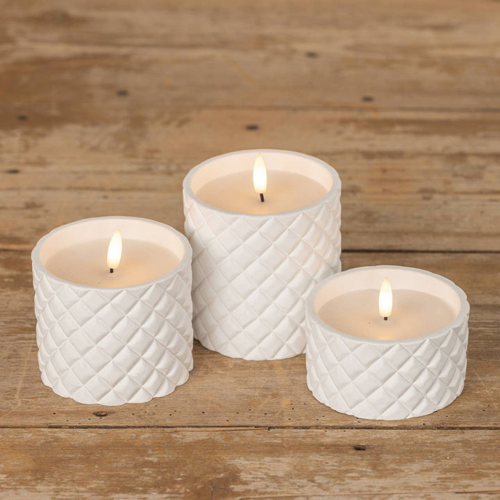 Introducing our 2.25" White Cement Grid 3D Flame Candle.