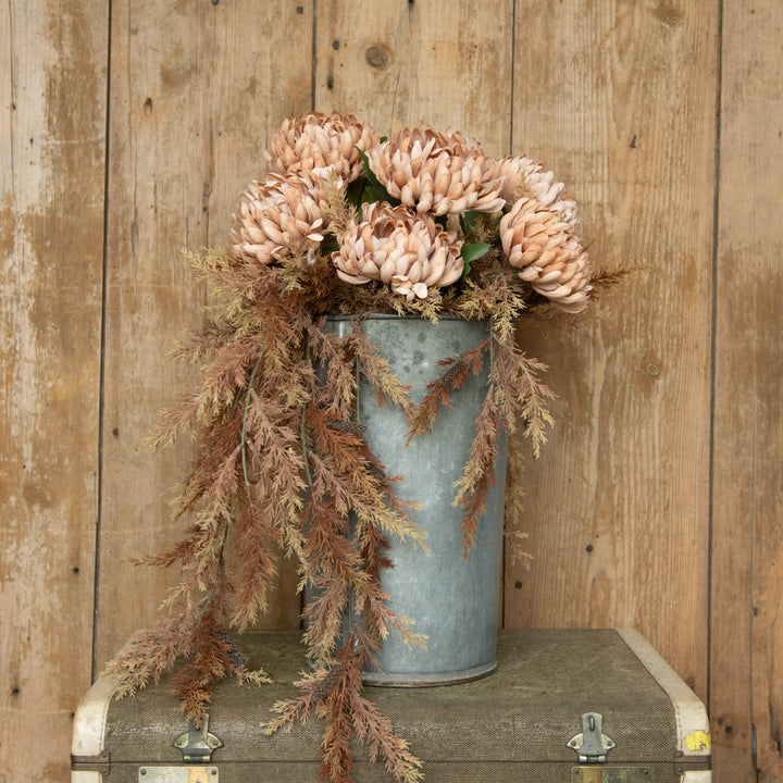 This 24.5" Straw Mum Spray features lifelike faux stems that bring natural charm without the maintenance. Expertly crafted to mimic the texture and appearance of real straw mums, it offers a durable and versatile option for floral arrangements, home décor, or event styling. Its realistic design ensures lasting beauty, making it ideal for professionals seeking quality and convenience in artificial floral accents.