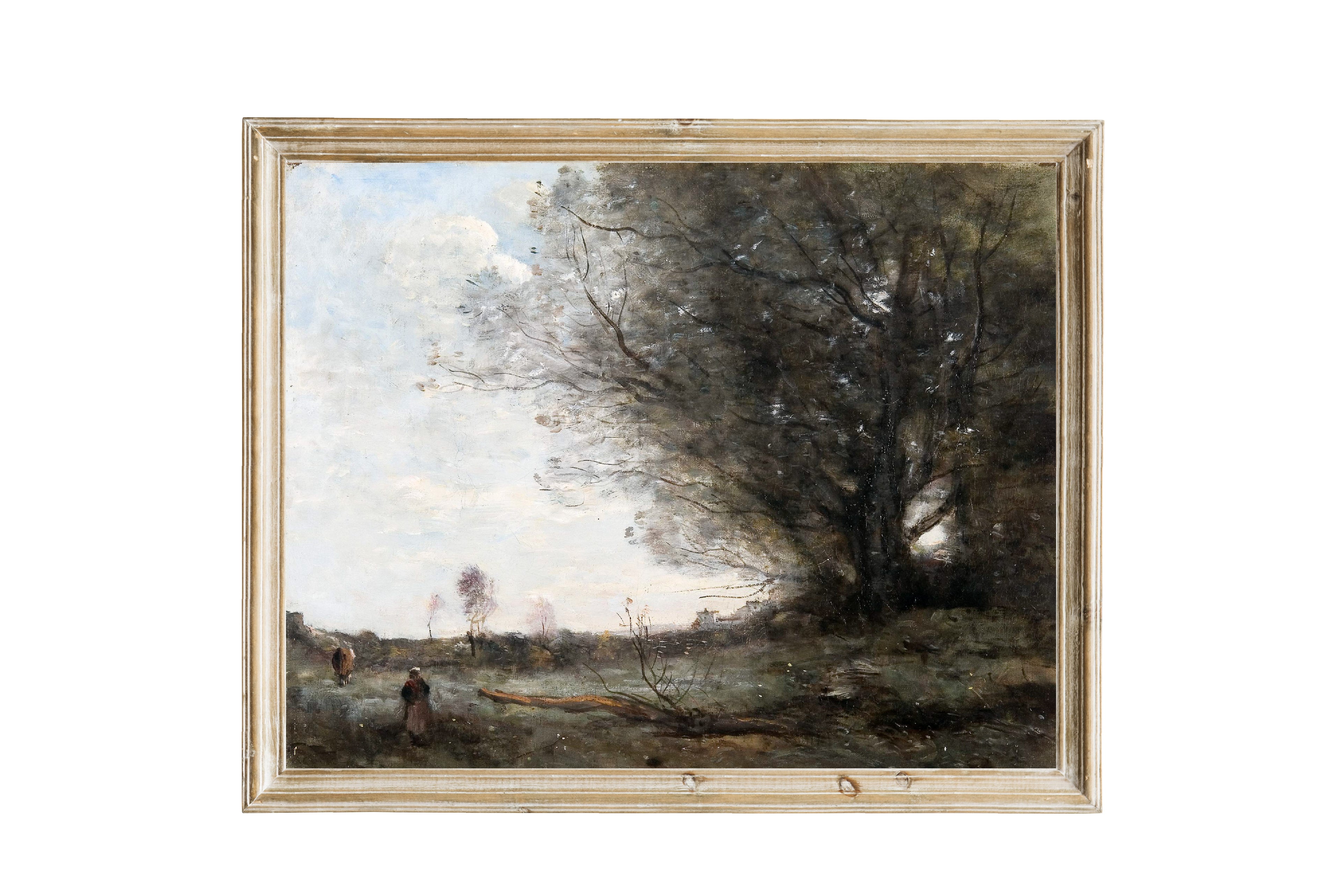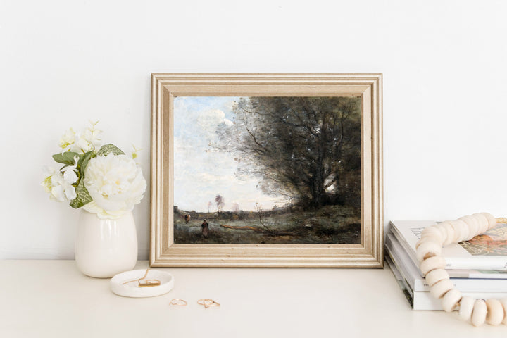 Let yourself be transported to a distant, moody landscape with this stunning vintage landscape art. Adorned with trees atop a distant horizon, it will bring an air of sophistication and class to your home. Its elegant and timeless style will elevate any space.