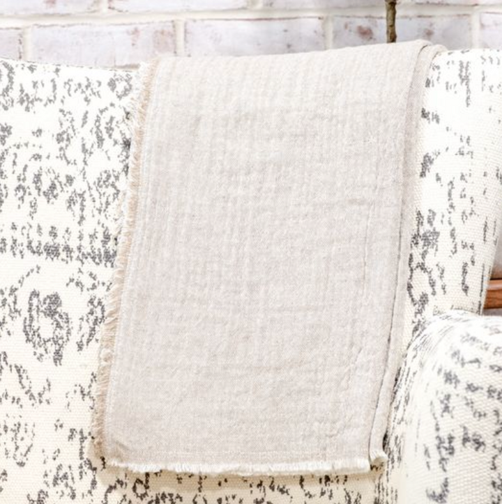 Expertly crafted from soft beige cotton, this throw blanket is both functional and stylish. The neutral colour easily complements any decor, while the high-quality material provides warmth and comfort. Perfect for snuggling up on the couch or adding an extra layer of coziness to your bedding.
