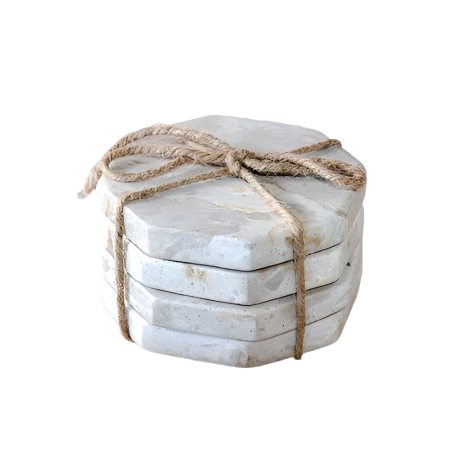 Elevate your tabletop with these Beige Marble Octagon Coasters, expertly crafted to combine durability and style. The natural marble surface resists heat and moisture, protecting your furniture from stains and damage. Their unique octagonal shape adds a sophisticated geometric touch, making them both functional and visually appealing for any setting. Ideal for preserving the beauty of your home or office surfaces with a refined, timeless accessory.