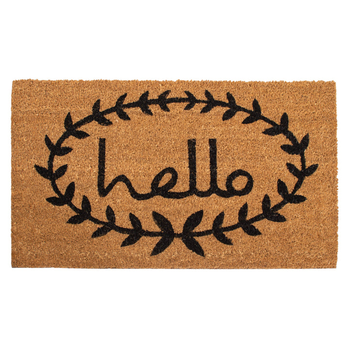 Welcome guests with elegance and grace with our Hello Doormat. Featuring the word 'Hello' in beautiful, flowing script, this doormat adds a touch of sophistication to your doorstep. The graceful lettering creates a warm and inviting atmosphere, setting the tone for hospitality. Perfect for those who appreciate timeless charm and a welcoming touch for their entryway, this Calico Hello Doormat welcomes guests with grace and charm. Made of natural coir, a dense fiber that is naturally mold and mildew resistant. Coir is a renewable resource that is durable and coarse, excellent for scraping shoes clean. Vinyl backed for increased durability and to help prevent movement, coir doormats are weather tolerant absorb moisture and retain their shape. For best results keep in a sheltered area such as a covered porch, keeping extreme moisture and sunlight to a minimum. Vacuum, sweep, or lightly hose clean.