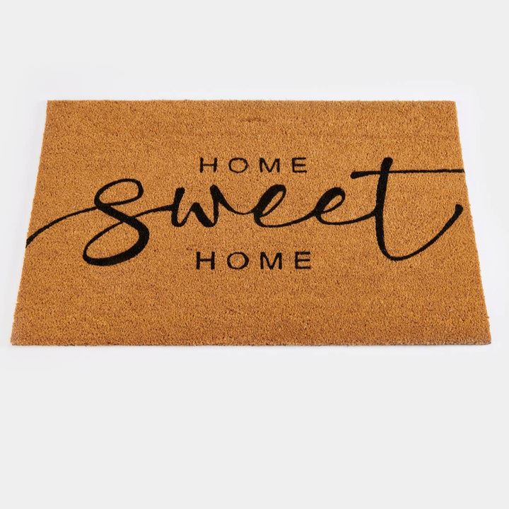 Keep your floors clean and welcome guests warmly into your space with this Home Sweet Home Coir Door Mat. Featuring the sentiment HOME SWEET HOME in black typography, this door mat is made from natural fiber coir because of its high absorption rate to keep your floors spotless and features a non-slip PVC backing to keep it securely in place. Clean by vacuuming.