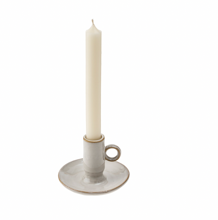 A timeless design that recalls old-world charm, the Cottage Candle Holder is crafted from durable ceramic and finished with a semi-transparent white glaze. Functional yet stylish, its sturdy handle makes it easy to move and display around your home.