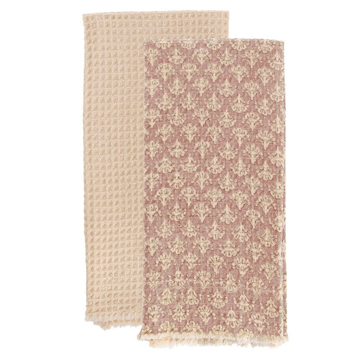 Elevate your kitchen with this set of Pink Damask Cotton Tea Towels, crafted from durable cotton for excellent absorbency and softness. Their elegant damask pattern adds a refined touch while ensuring practical use for drying dishes or hands. Designed for repeated use and easy care, these towels combine timeless style with reliable performance for everyday kitchen tasks.