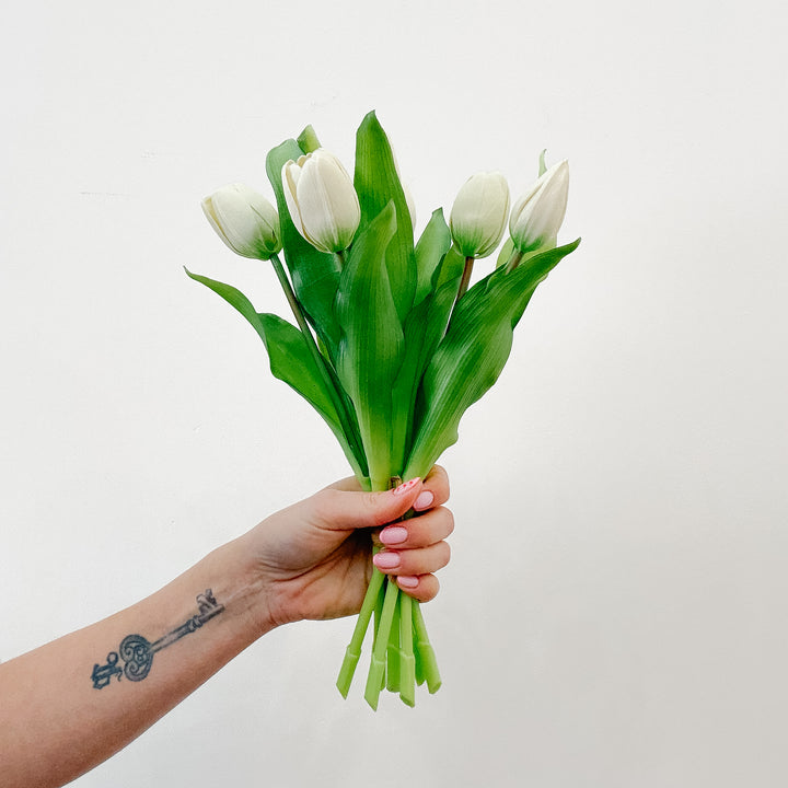 Elevate your interior spaces with our Fresh Touch White Tulip Bundle, featuring premium artificial blooms that capture the refined elegance of genuine tulips. Each stem showcases meticulous detailing and lifelike texture, delivering sophisticated botanical beauty without maintenance demands. Perfect for creating lasting floral arrangements, these white tulips complement any décor aesthetic while maintaining their pristine appearance year-round. Ideal for home styling, event design, or gifted arrangements that endure.