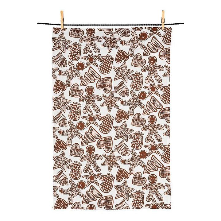 Cookie and baking enthusiasts alike will adore this Gingerbread Cookies Kitchen Towel as part of their holiday decor. Designed by American artist Kris Ruff, this white cotton towel is accented by a dizzying assortment of gingerbread and holiday-shaped cookies for a delightful complement to any kitchen's holiday vibes. Other holiday kitchen towels also available.