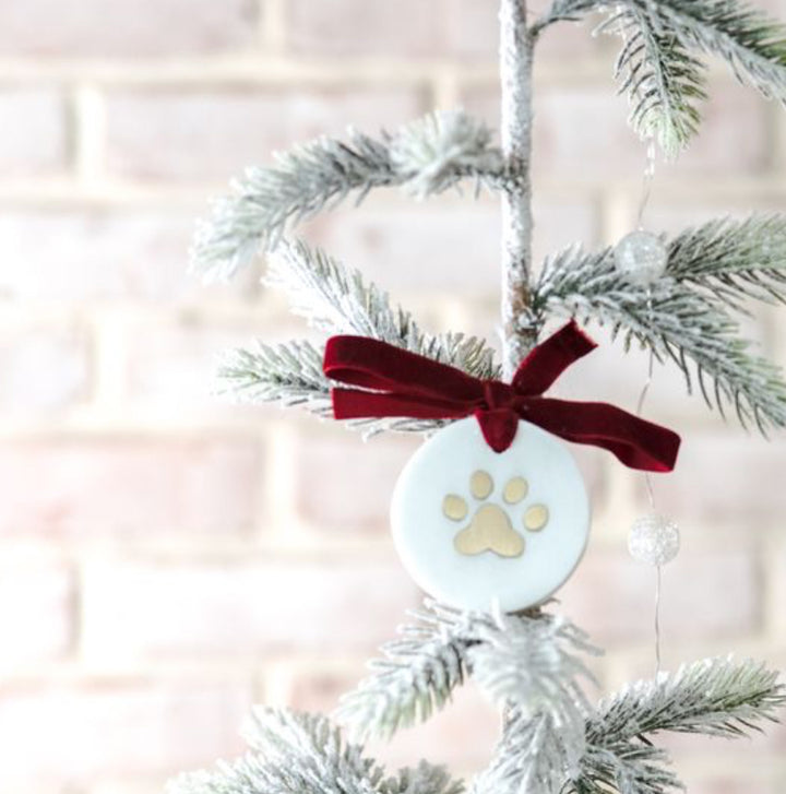 Enhance your holiday decor with our elegant Gold Paw Print Ornament. Made with high-quality gold material, this ornament features a beautiful paw print design that will add a touch of sophistication to your tree. Perfect for pet lovers, it will surely become a cherished addition to your collection for years to come.