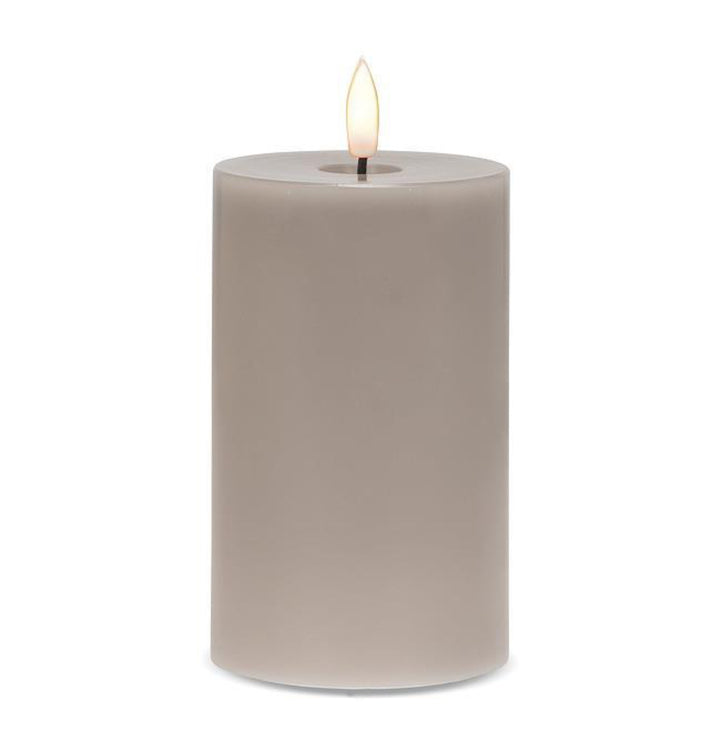 Enjoy the warm glow of candlelight without any fear of fire or mess with this elegant Large Luxlite Grey LED Pillar Candle. Designed in Sweden, this all-wax candle features a realistic, flickering 3D LED flame, with a run time of over 150 hours. Features an 8 hour timer. Powered by 2 x AA batteries, this safe, ambience-adding candle makes an understated complement to any type of decor, either on its own or paired with other LED candles.