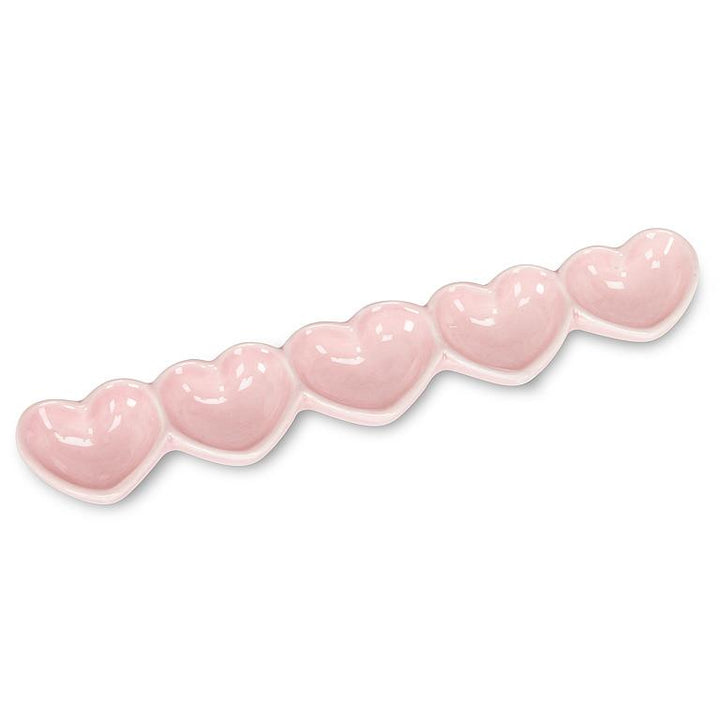 This ivory and pink ceramic tray brings five times the love. Use it to hold rings, serve treats, or dress up your vanity – it’s both sweet and functional, right down to the heart-shaped wells.