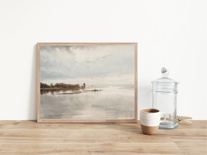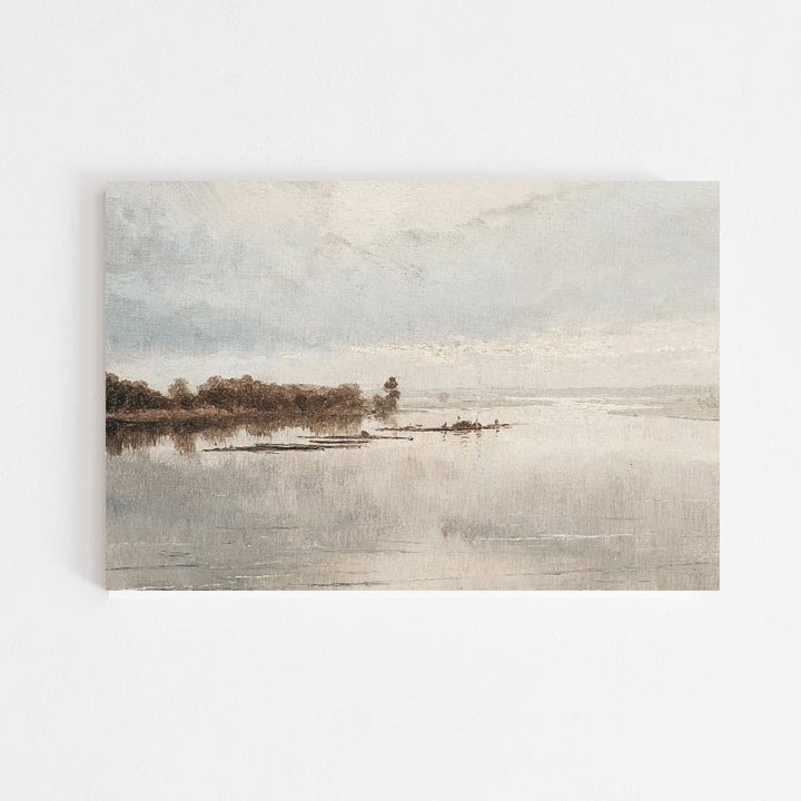 Discover the serene beauty of a lakeside view with the this print. Featuring a breathtaking shoreline with calming water views, this print adds an elegant touch to any room and oozes sophistication. Let the serenity wash over you wherever you may be.