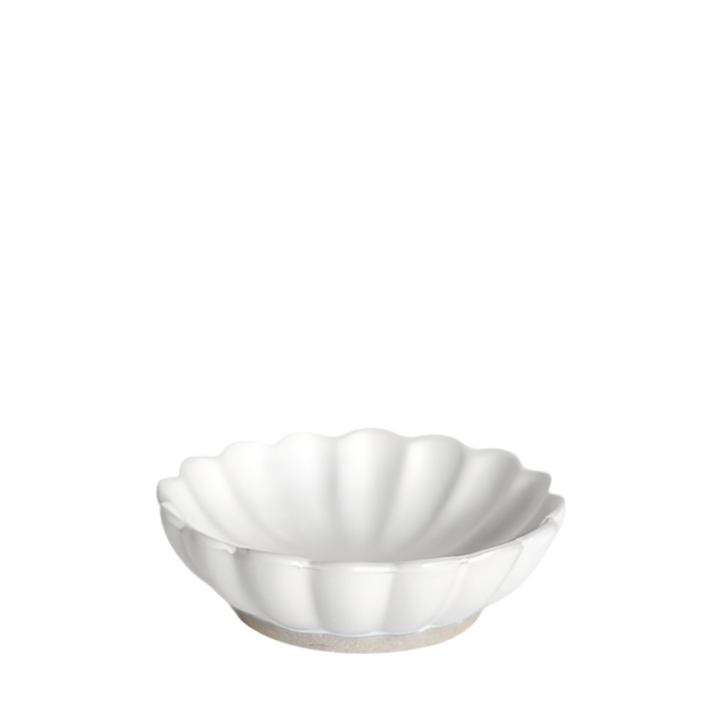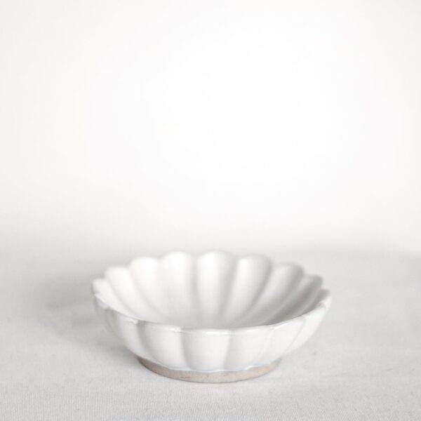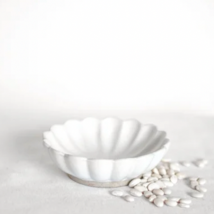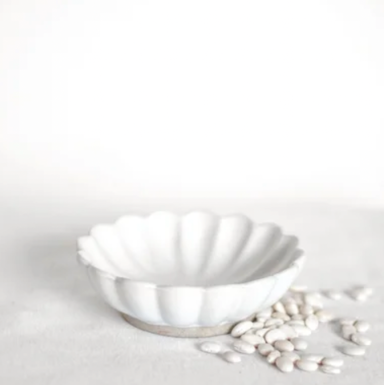 This elegant scalloped ceramic bowl is sure to enhance any space.