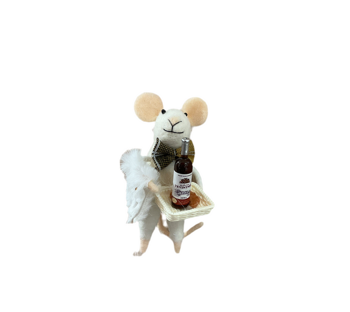 Introducing the Sommelier Mouse, a perfect addition to your Christmas decor. This expertly crafted mouse ornament adds a touch of elegance to any setting. Made with intricate details and a professional touch, this festive Sommelier Mouse is a must-have for any wine lover's holiday display.