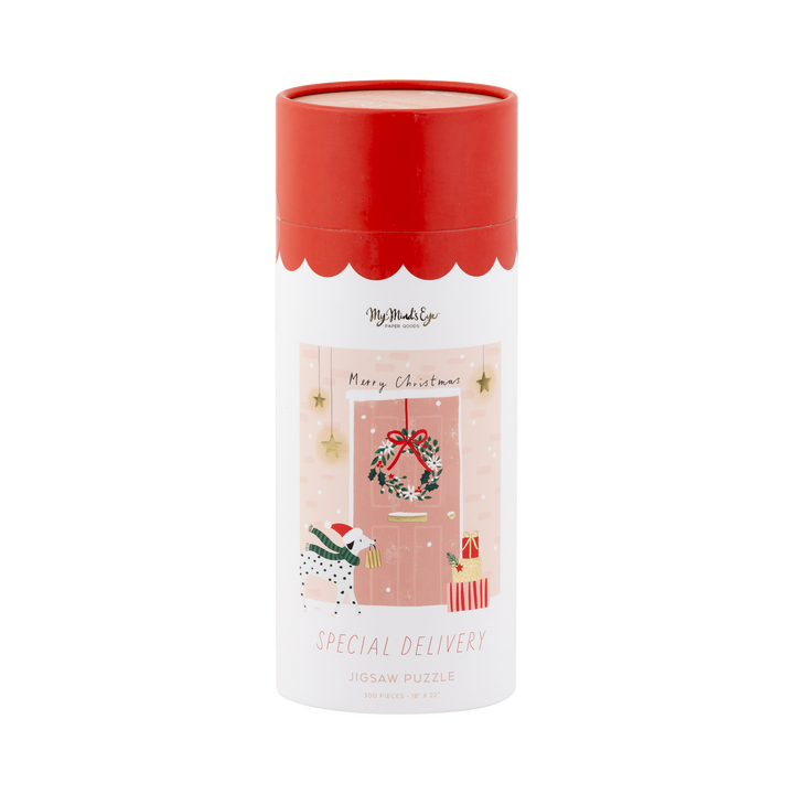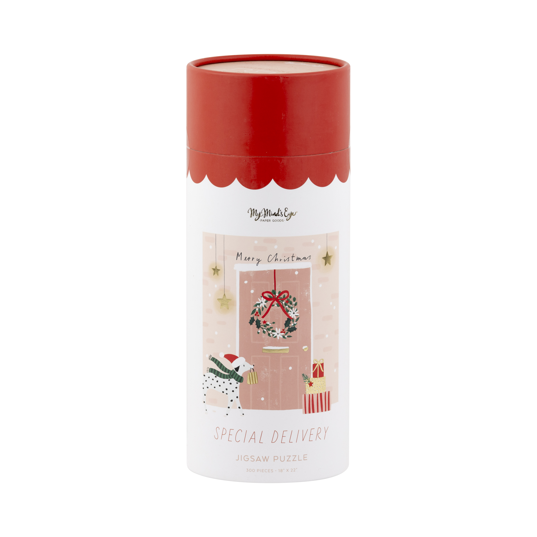 Delightful holiday puzzle features a special delivery from an adorable pup. A perfect gift for any dog lover. Get into the festive spirit with this playful Christmas puzzle! Featured artwork from Helen MacKay