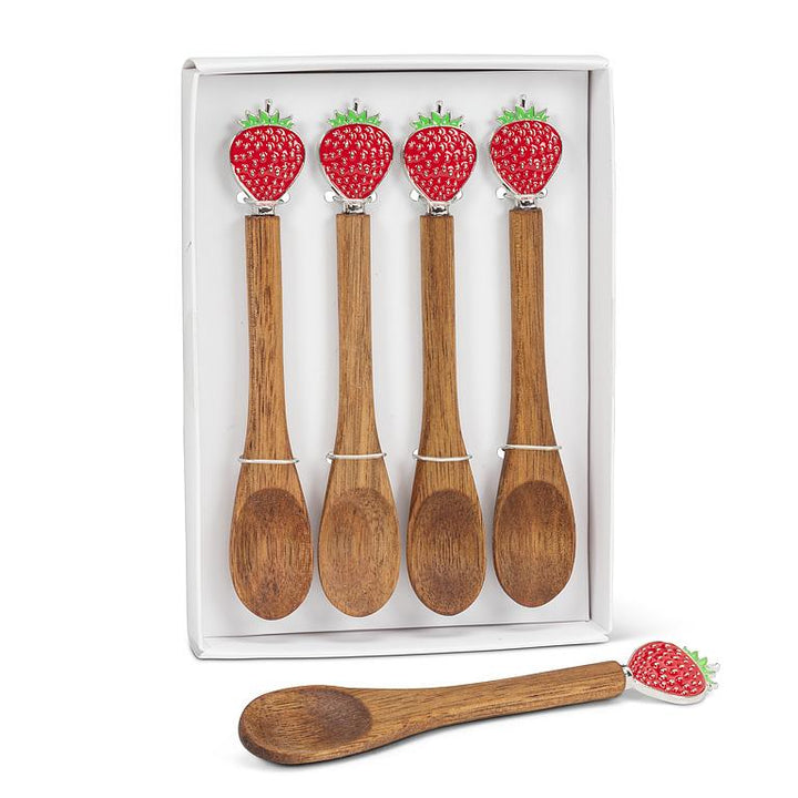 Finished with detailed strawberry tops, these small spoons bring a touch of garden freshness to tea time, desserts, or jam jars.
