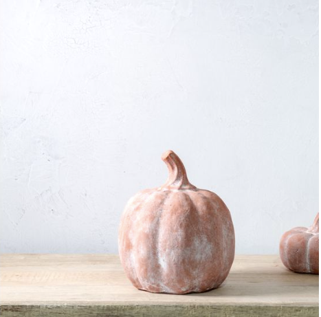 This 8-inch terracotta pumpkin offers a natural, rustic charm perfect for seasonal decor or year-round display. Crafted from durable terracotta, it provides a sturdy and authentic texture that enhances any setting. Its moderate size makes it versatile for tabletops, shelves, or mantelpieces, adding a warm, earthy accent to your home or event styling.