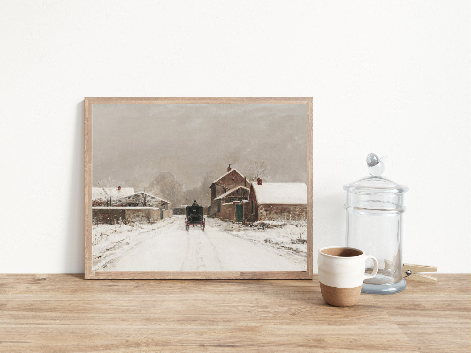 Exquisite, vintage-inspired winter print gives your home an elegant touch of rustic charm. Cozy and serene, the winter landscape radiates with a timeless allure while the home scene adds a touch of nostalgia. Enchanting and timeless, this classic print is perfect for the winter season.