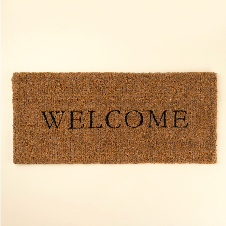 Made from 100% sustainably sourced coir, this large-format doormat blends timeless design with eco-conscious craftsmanship. Its bold serif “WELCOME” message and natural texture create a grounded, friendly entryway that reflects thoughtful accent decor and ethical sourcing values.